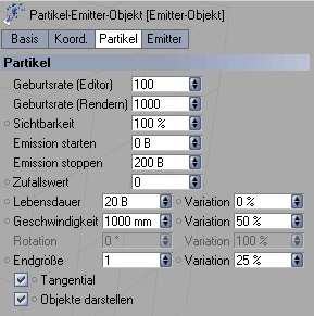 Die Parameter des Partikel-Emitters.