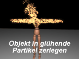 Verwendete Techniken: Thinking Particles (Matterwaves), Xpresso. Das eigentliche Verschwinden der Figur geschieht mittels einer animierten Alphatextur.